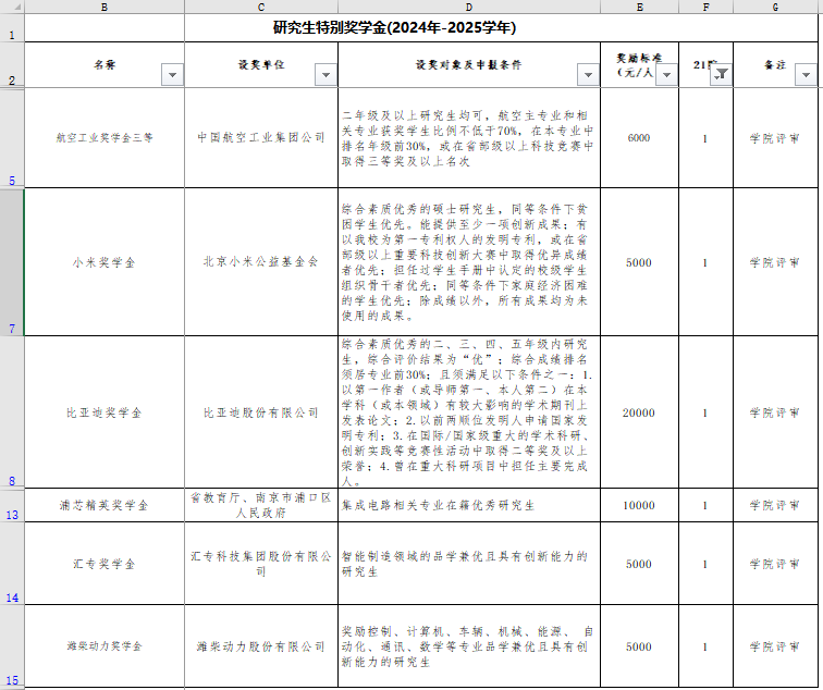 2024-2025学年学校分配给我院特别奖学金名额如下。