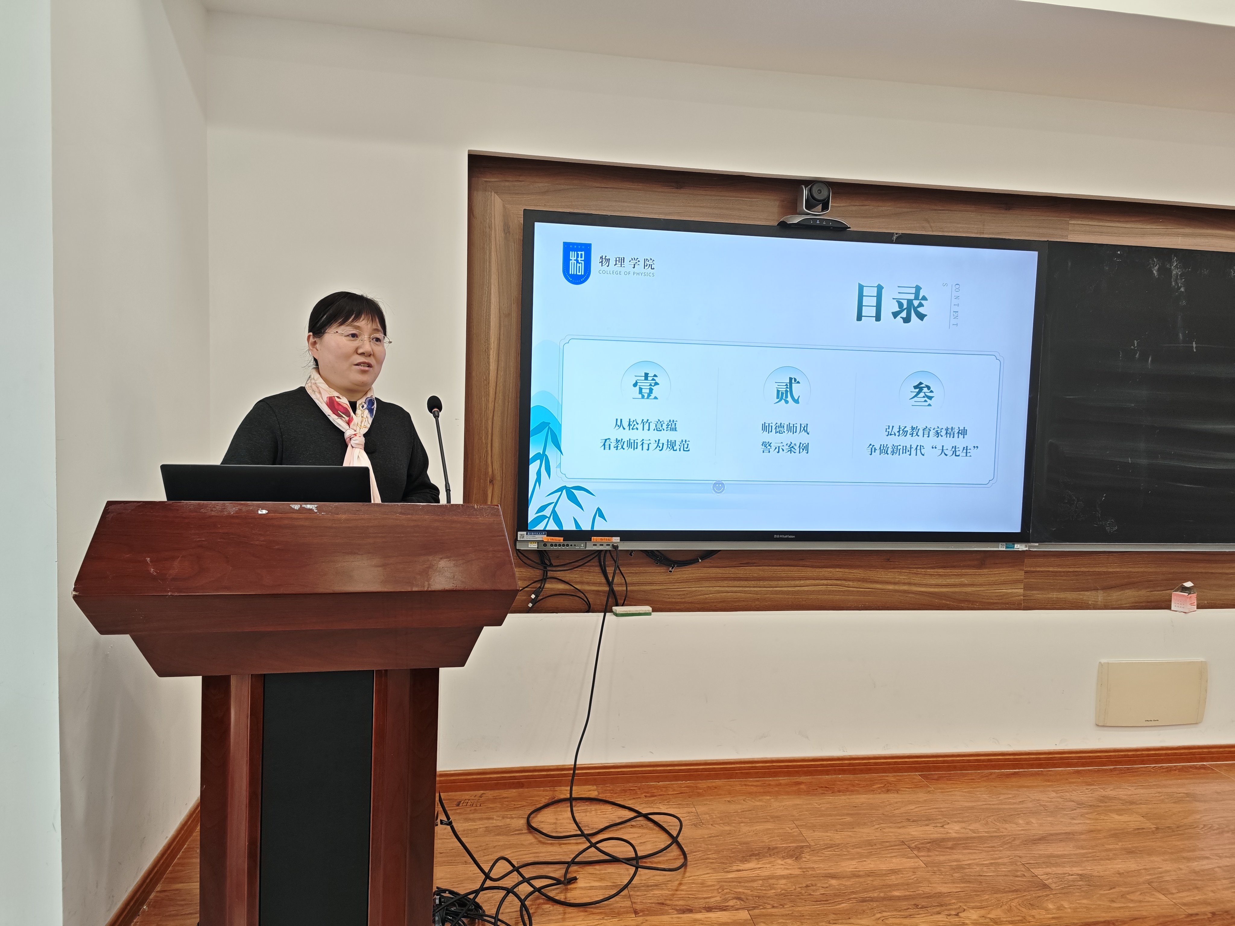 为巩固拓展中央八项规定精神学习教育成果,持续推进作风建设常态化长效化,进一步加强“清廉学院”建设,12月11日,物理学院举办“廉洁从教·清风润院”师德师风教育主题活动。学院党委纪检委员阚彩侠以及20余位师生代表参加本次活动。