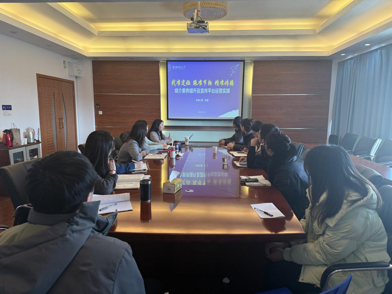 1月9日下午,物理学院开展格“务”致知——物理学院服务效能提升讲堂,本期特邀校党委宣传部融媒体中心副主任彭丽开展题为《找准定位、踩准节拍、精准传播——媒介素养提升及宣传平台运营实操》的专题培训。全体机关人员以及学生骨干参加培训,培训由院党委副书记魏慧冬主持。