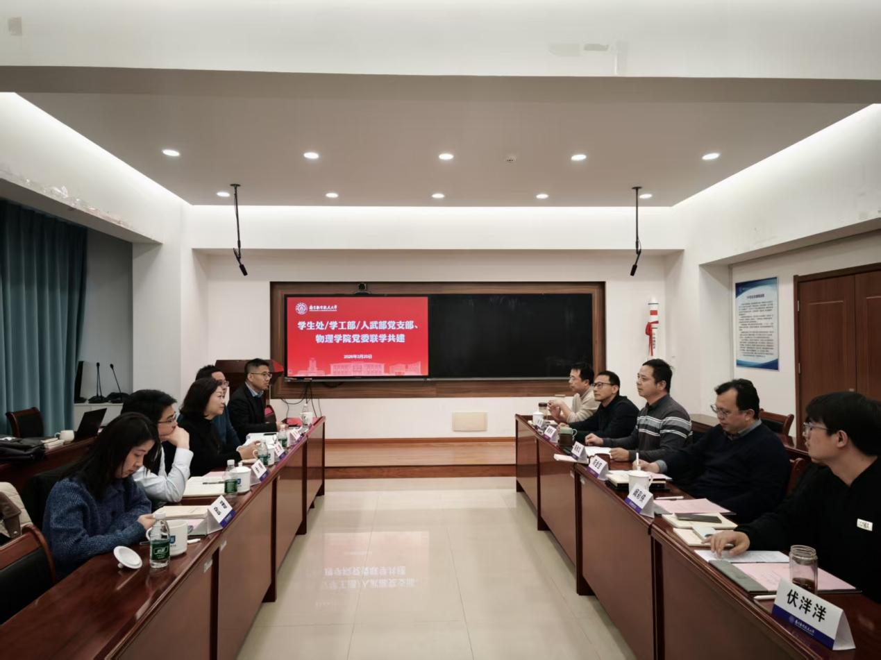 随后,魏慧冬围绕“师生从游”“明理精工”“空天物理+”三种物理文化,介绍了学院学生工作开展情况。双方聚焦立德树人落实机制、辅导员队伍发展、基础学科人才培养等重点工作,进一步开展了研讨交流。